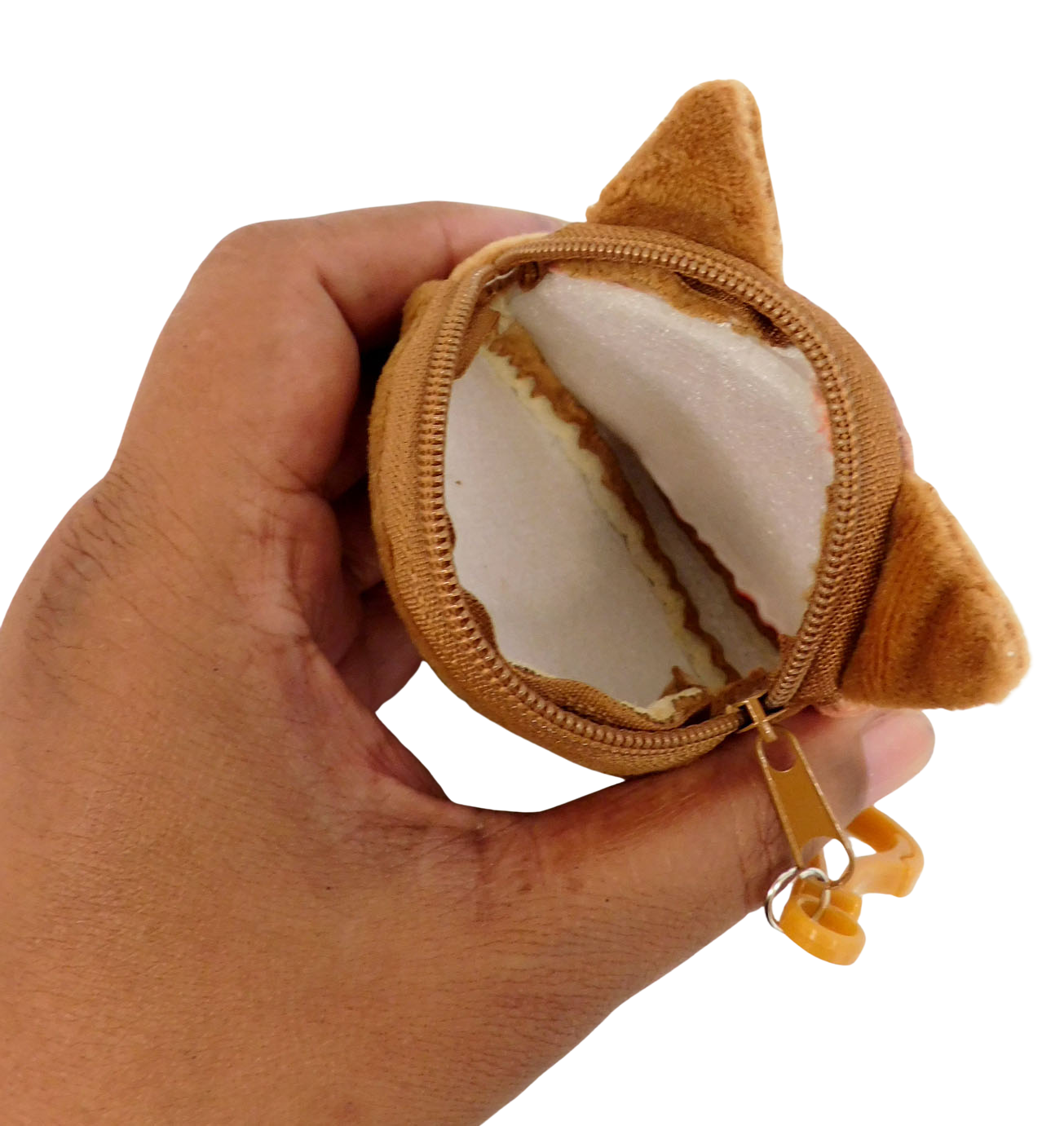 Een sleutelhanger waar een beursje aan zit van zachte kortharige pluche stof.