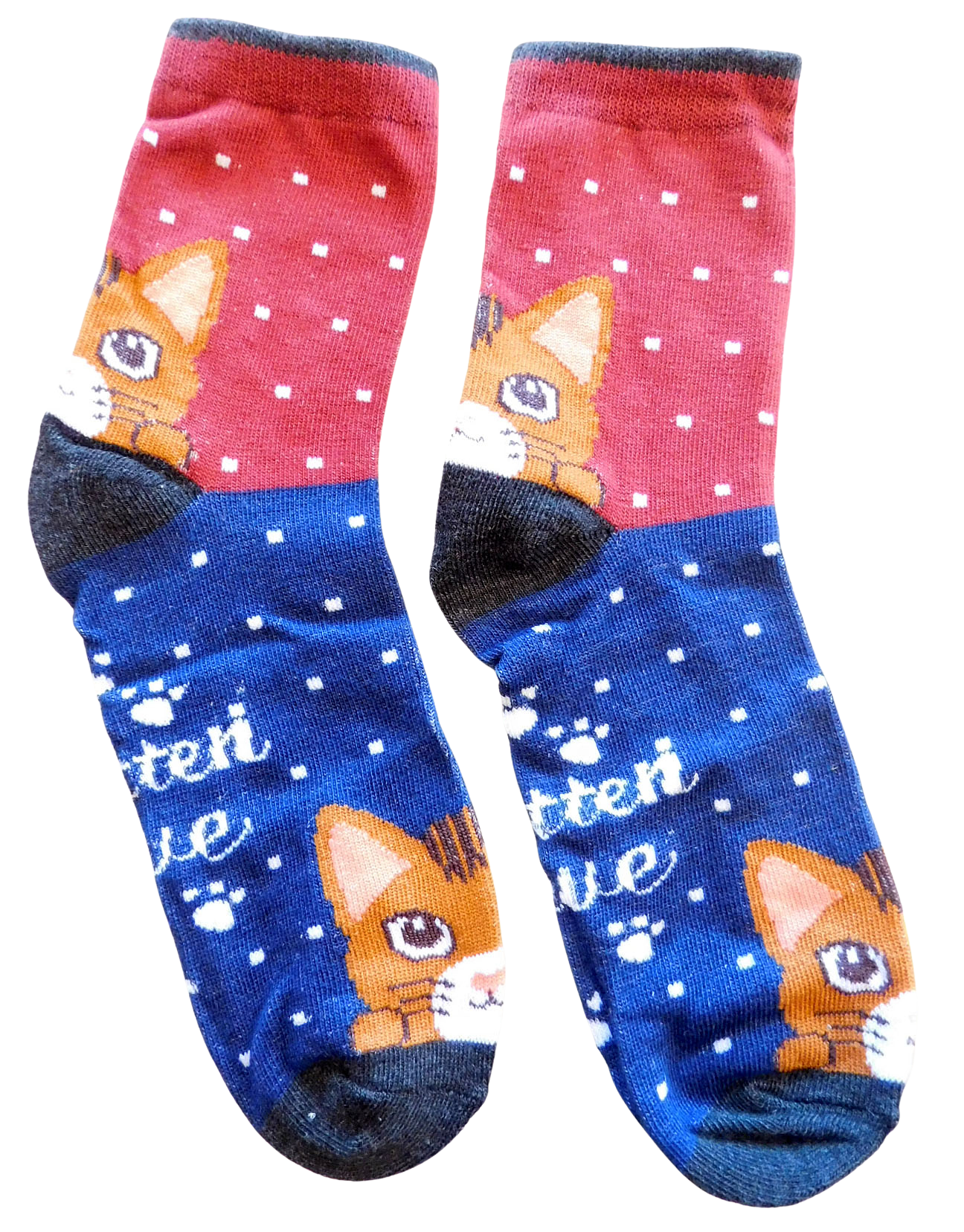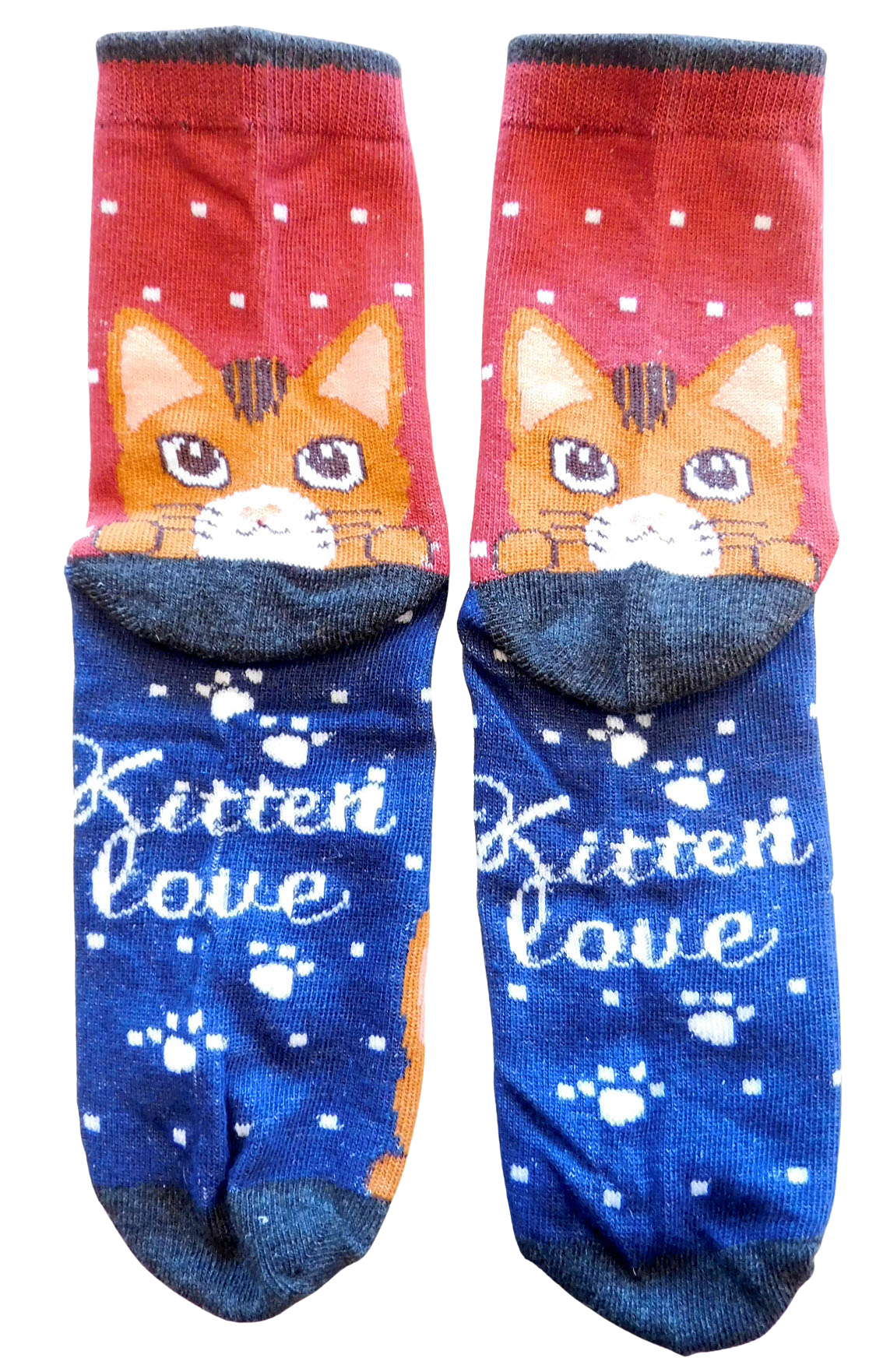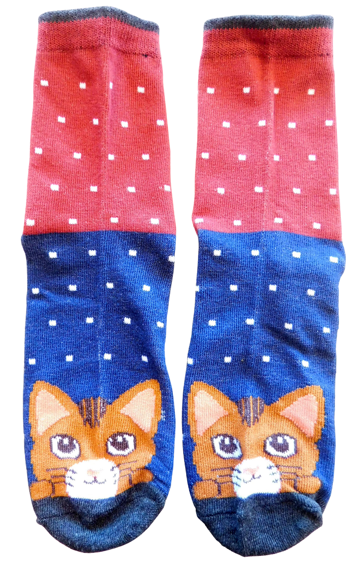 Kattensokken rood/blauw, rode kat