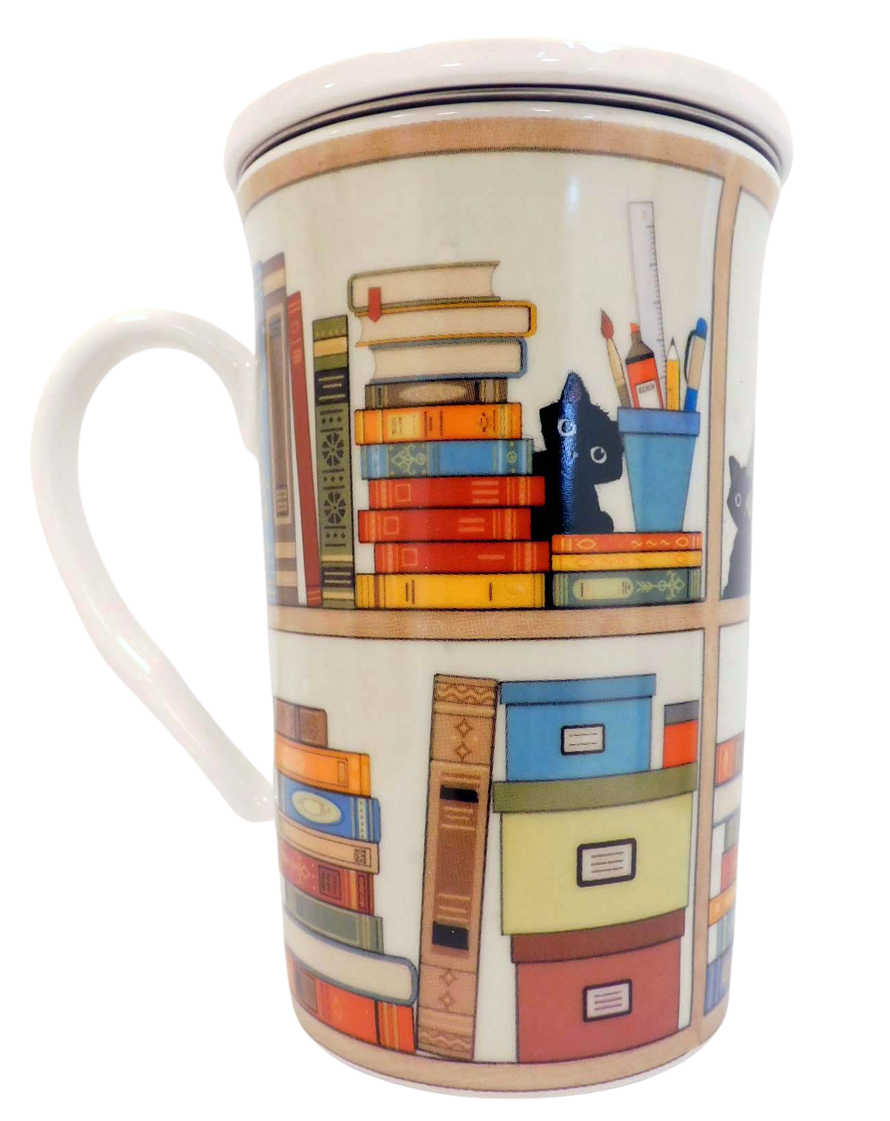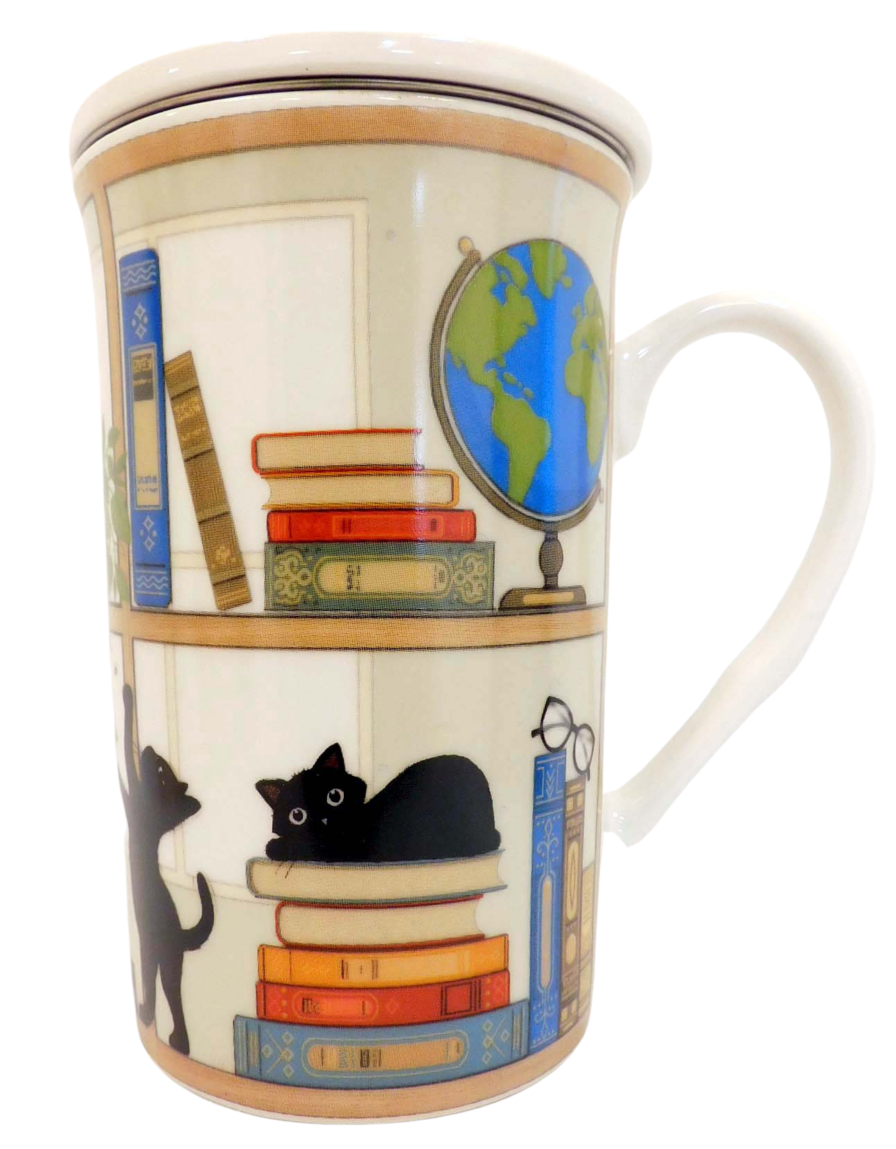 Grote theemok Zwarte katten op boekenplank, Bug Art