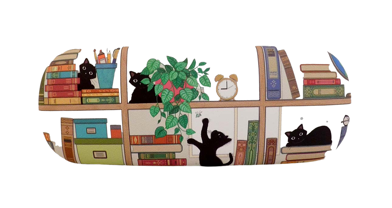 De kunstzinnige print met zwarte kat(ten) in de hoofdrol komt uit de Bug Art serie.